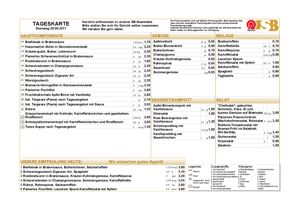 Unsere Tageskarte beinhaltet alle Speisenkomponenten und 5 Menüvorschläge von uns.